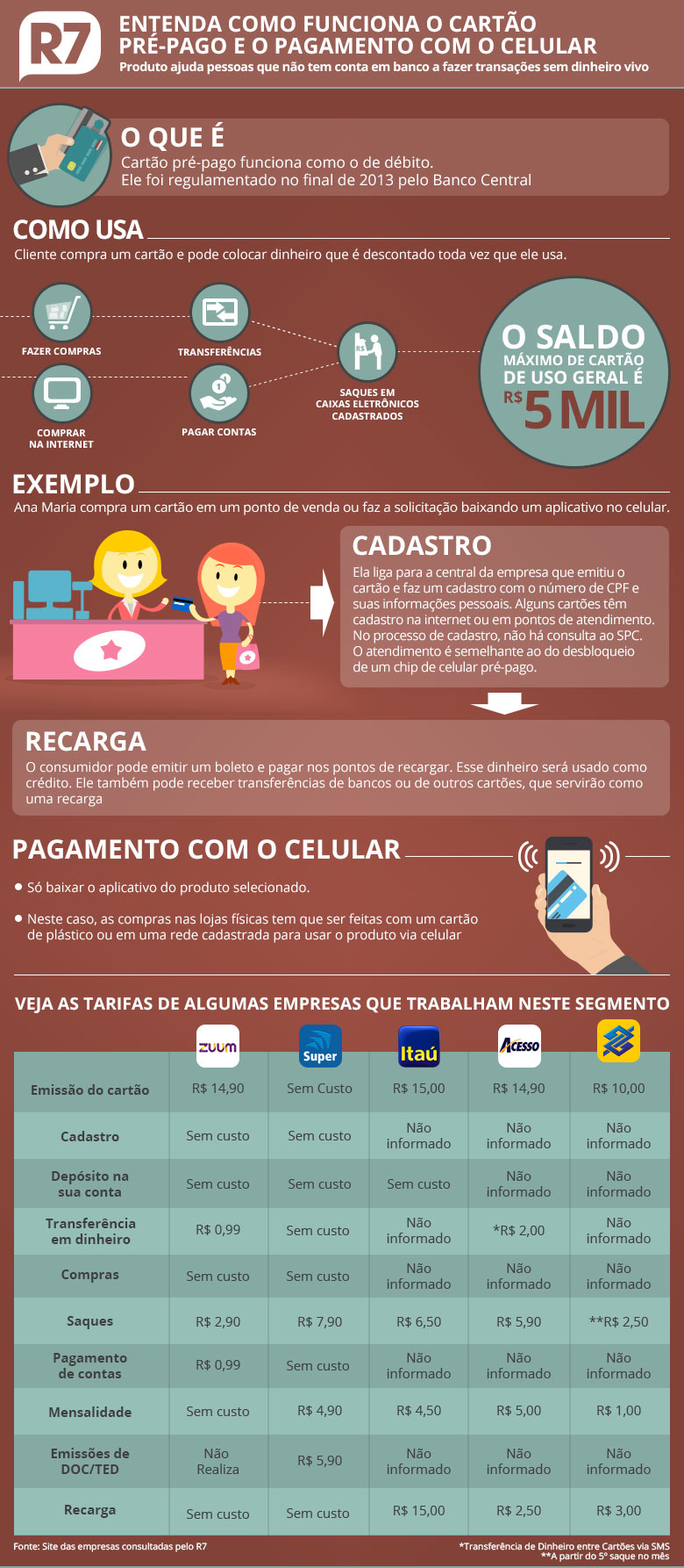 Geralmente, o cliente compra o cartão, faz um cadastro na empresa que oferece o serviço, carrega com dinheiro e pode gastar essa grana para comprar, transferir valores, sacar nos caixas eletrônicos e fazer pagamentos. Só é possível gastar o saldo depositado. Por isso, o usuário não faz dívidas.